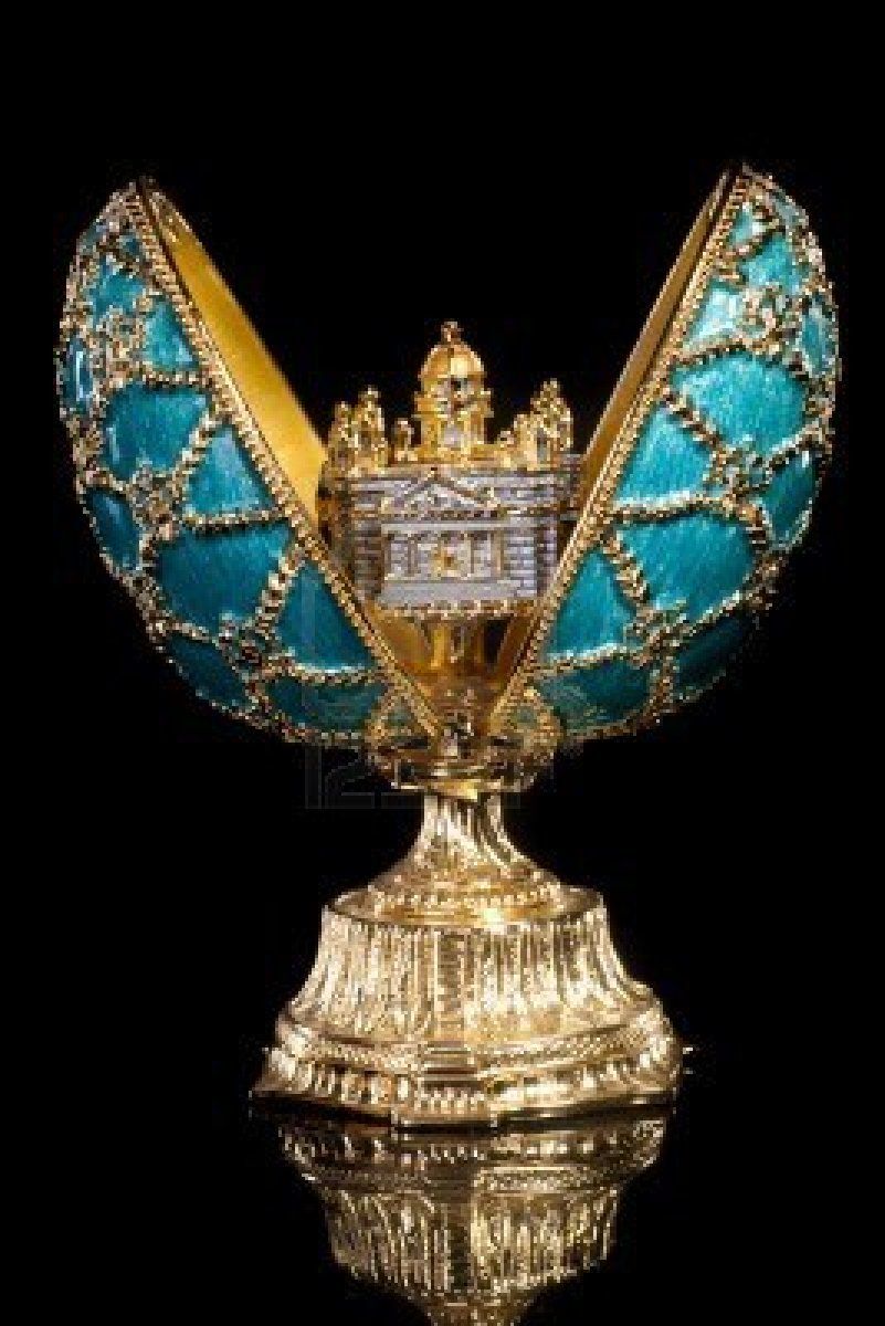 We open the book close to 90 degrees and then we can connect the plastic screen that was connected to the back, and also connect it to the front. And it might not be a book, merely an accessory that we can purchase once. The inside will have the printed page and when we look through out mobile or AR glasses onto the screen we now see an image of (for example) a faberge egg. And as we go through the pages, we can look at detailed shots of that egg in many ways and as we rotate the screen (and book) we see the 360 degree representation of that egg. And this could be any object, any piece of jewellery, specific jewellery we cannot normally see. As we see the image below, we see that side and that side alone, yet with AR we can do more and we could see more (and in 3d). We could have different codes for every part of the egg, showing us just how sensational these eggs are.