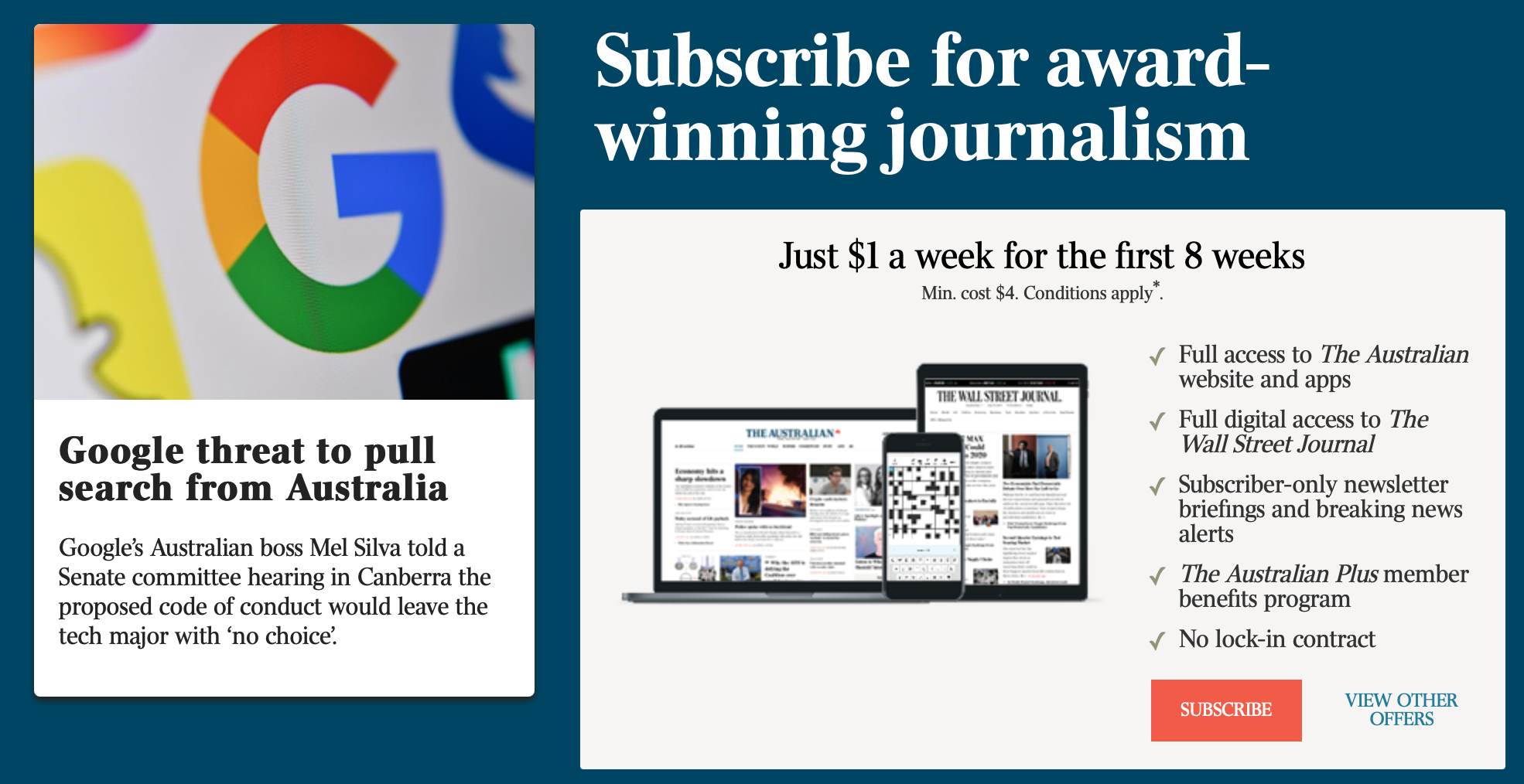 We are given the link, which gives us a subscription image and this paper is not the only one doing that, they are using news items for advertisement, so why exactly does goole have to pay for THAT privilege?