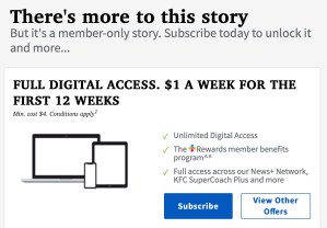 This is about that News bargaining setting. Here we get ‘by forcing us to pay to provide links to news businesses’ sites’, and I go ‘Why?’ A lot of them do not give us news, they give us filtered information, on addition to this is that if I am unwilling to buy a newspaper, why should I pay for their information? If they want to put it online it is up to them, they can just decide not to put it online, that I their right. In addition some sources for years pretty much EVERY article by the Courier Mail get me a sales page (see below), this is their choice and they are entitled to do so.