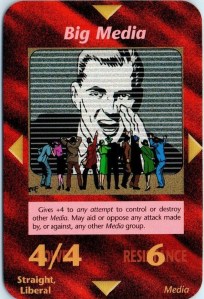 As you can see it connects from a higher card on one side and connect to THREE sides to smaller skills. Now some have 0 connectors, some have one and a few will have two, but YOU decide the application of that skill. Now consider we go back to the first card, it is in the game not called ‘Shangri-La’, but ‘Covert’ and we have 2 of those cards in the beginning of the game ‘Covert’ and ‘Overt’, now we have archery which is (comparing to Big Media) not 4/4, but 2/3 It can connect to 2 stacks and enforce three connecting skills. In addition any card can be upgraded. The Big Media resistance will be its own power. So over time that number goes up (as you become a more skill-full archer), now consider that we end up with 4/5 stacks Covert, Overt, Social, Commerce, Faith and Govern. Six elements and you have either 4 or 5 stacks so something has to give and in the beginning you only have two stacks, so it will be about choices. How will you decide?
