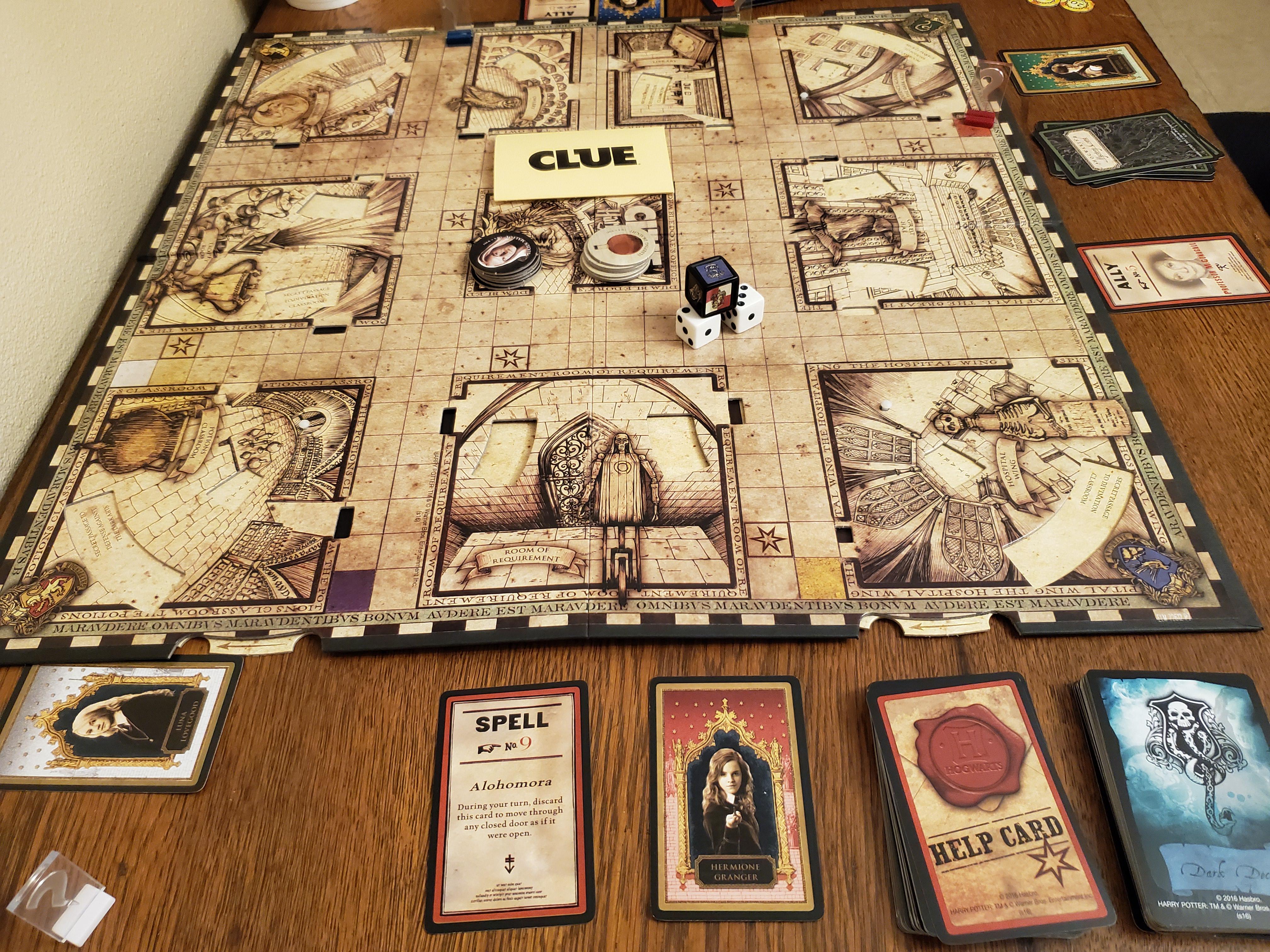Behold the Harry Potter edition of Clue. A game that could be played online as well. But consider another stage. What if the stage of the board changes depending on the character you play? The rooms and layout remain the same, but how you see these corridors and rooms do not. In Hero Quest we see a ‘bland’ board because at that time it was what there was. Now consider these corridors having shades and shadows. It gives a rogue less visibility, implying that in a dark part of a corridor he is unlikely to be seen and can attack once with benefits. In clue the characters have different secret passages, or at least not all of them. In addition (playing by the original clue rules) Hermione has additional question skills. Harry has movement skills (broom and such). It doesn’t change the game, it merely alters it and it becomes a whole lot more interesting to play that game with a specific character.