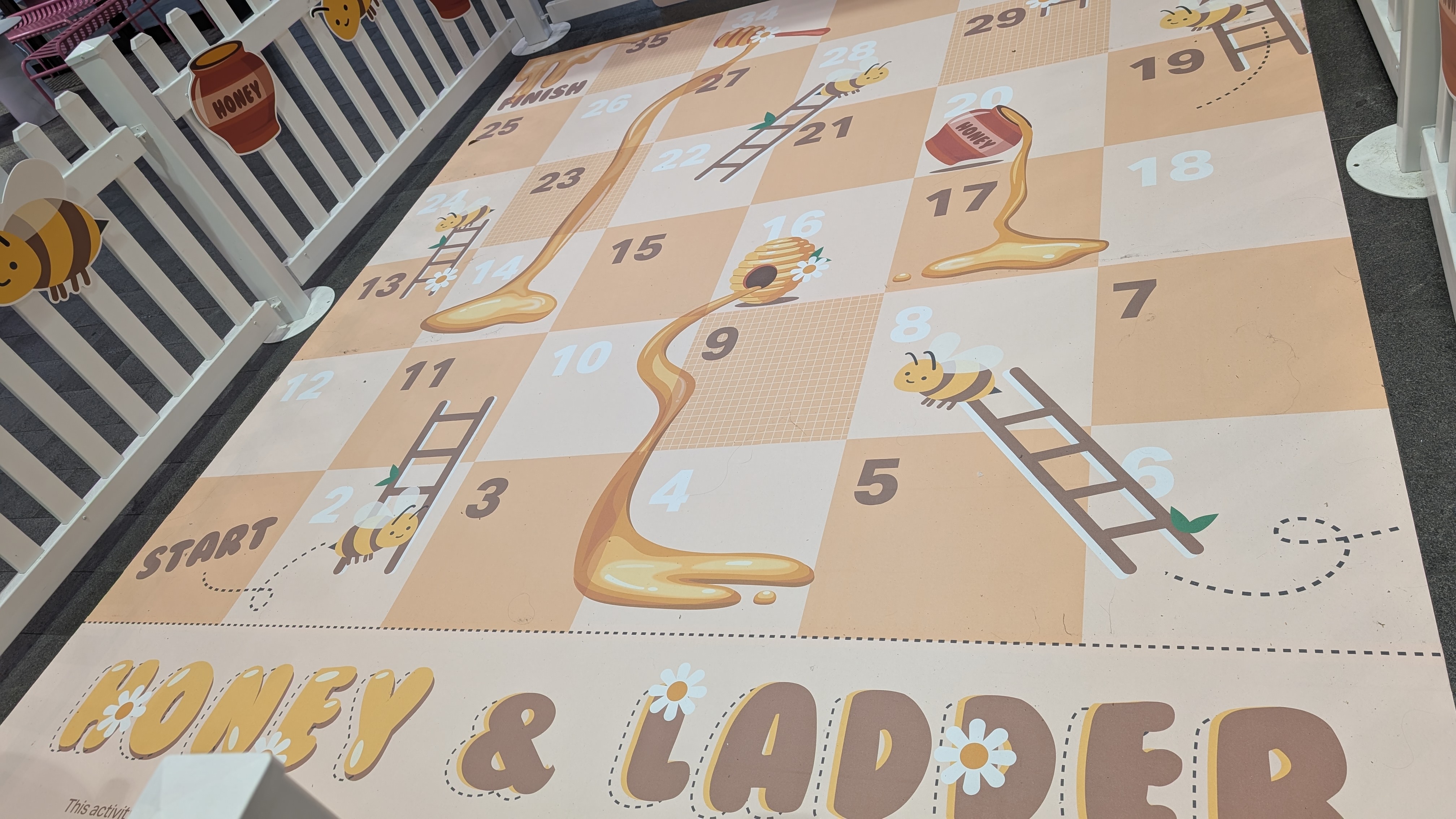 Yup, it sounds and is a Childs game. It is based on the old original Snakes and ladders, which I haven’t played since the 70’s I reckon. I saw this Childs game in a larger version in a place called Burwood. Where the honey is the decline and the ladders go up. It is a simple game and this game only has 36 squares. A simple game with a roof in the open as such parents gets to have fun with their children, or even children playing together. A small 30 minutes of joy I reckon.
