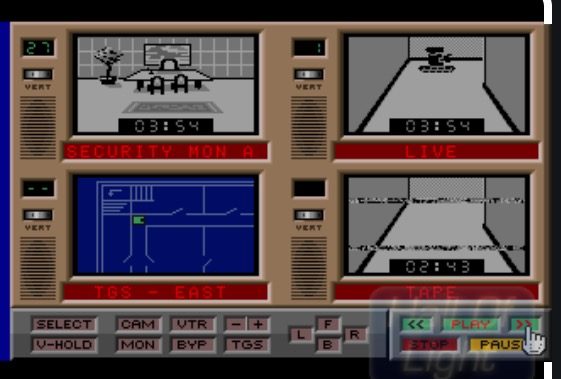 In the original game it was about setting up locks, but what if we take a gander to Hacker 2 (Activision, 1986) and add the camera feed? We now have a larger station than before and we have the technology to make it look really good. We can add the cross-over that as the hacks were more complete and better we see more camera views.
