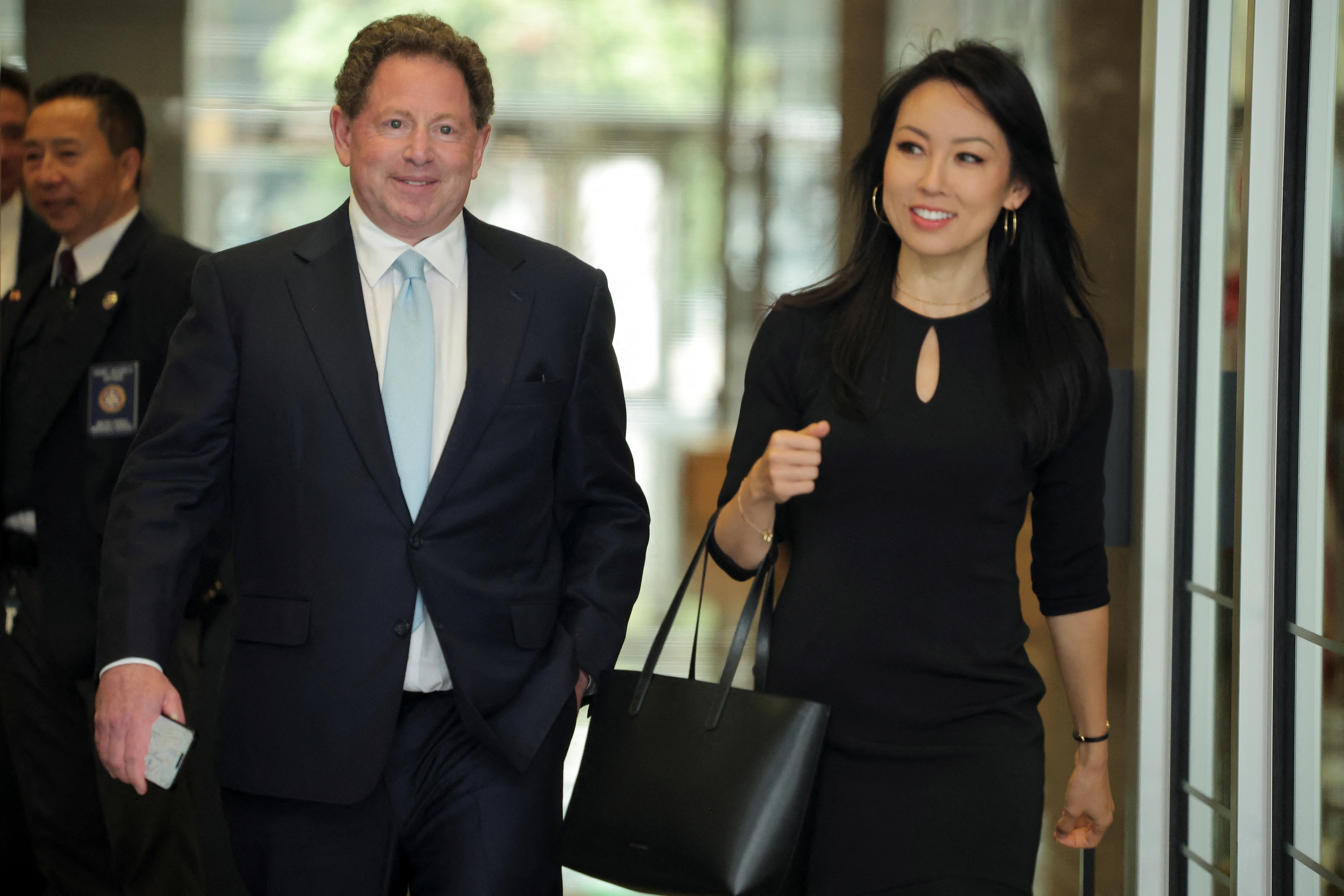 Activision Blizzard CEO Bobby Kotick leaves with Chief Communications Officer at Activision Blizzard Lulu Cheng Meservey after testifying at the northern district of California during a trial as U.S. Federal Trade Commission seeks to stop Microsoft deal to buy Activision Blizzard, in Downtown San Francisco, California, U.S. June 28, 2023. REUTERS/Carlos Barria
